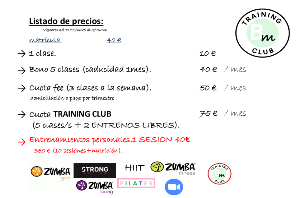 CLUB TRAINIG con reserva de uso libre a través de whats app